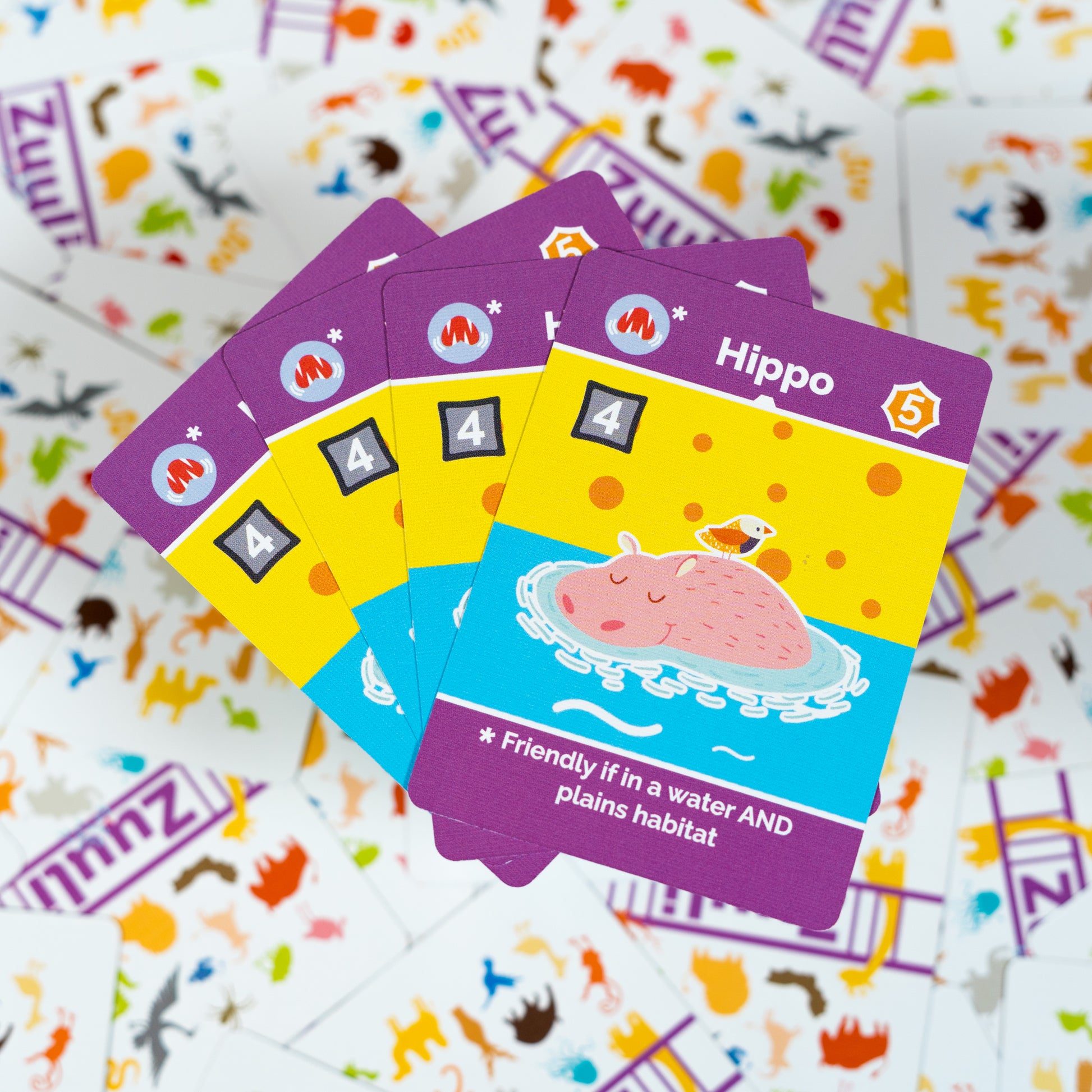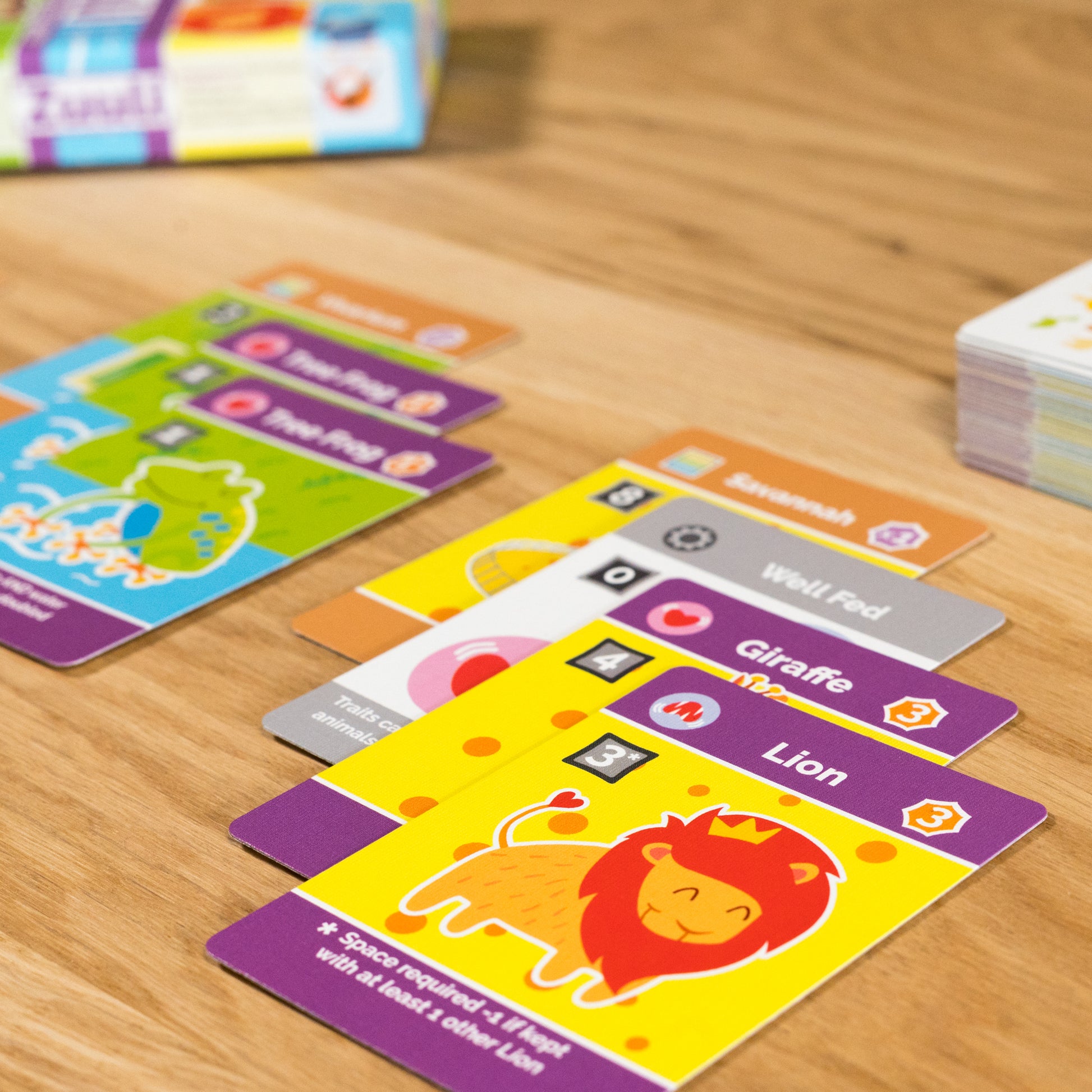 Collect enclosures, rescue animals, install upgrades and build the highest scoring wildlife park you can in this family friendly pick and pass card game. Don’t let the cutesy looks fool you into thinking this is going to be easy though! Can you keep the Lions away from the Anteaters on the Savannah plains? Are your sloths lonely or living a happy life on an Open-Air island? Your Zuuli adventure awaits! For how to play, scroll down.