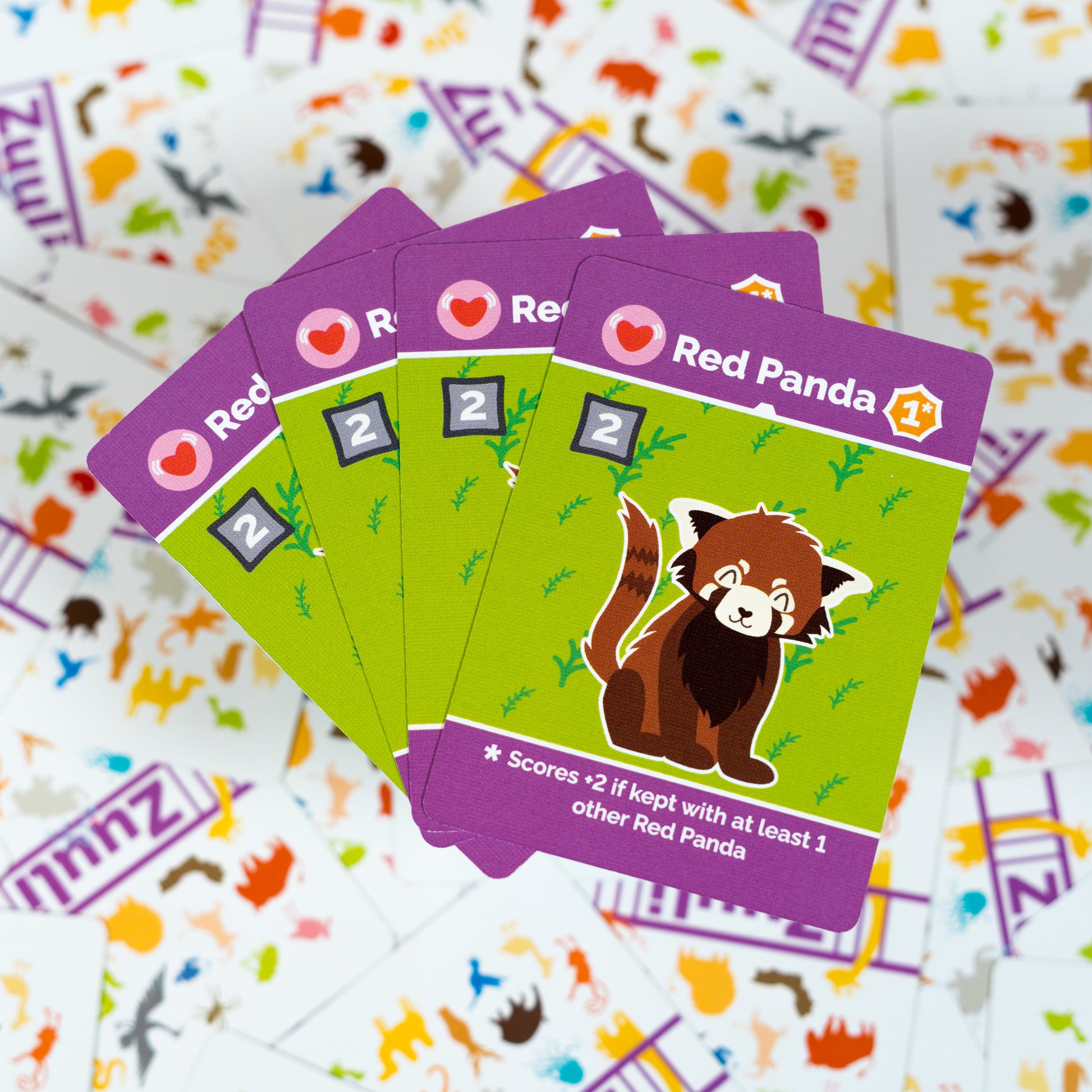 The 2nd edition of Zuuli is jam packed with new features, including a mini expansion that adds 2 new animals to the game, the Hippo and Red Panda, 1 new enclosure and upgrade, support for an additional 6th player, a larger, sturdier box and a 50 page scorepad.